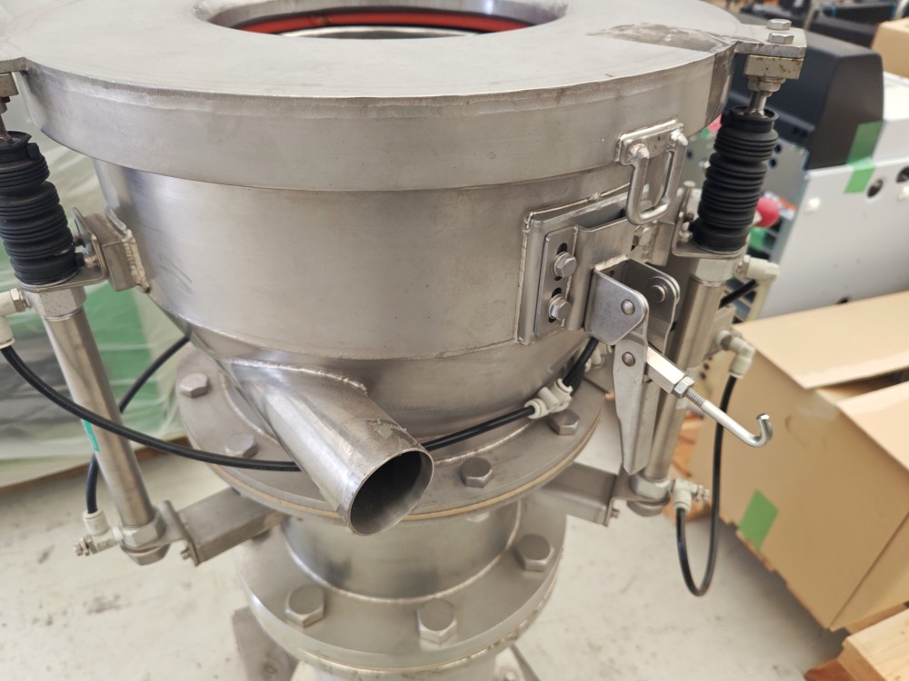 フレコン排出口を挟みこんでシールし、発塵防止する装置です