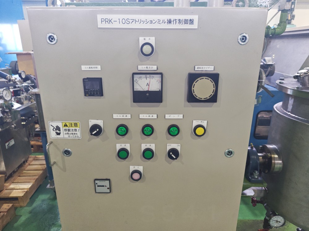 | 装置仕様 | 有効容量:80L(ベッセル部) スクリーン幅:3mm メディア種類:WC 標準充填量:〜55%(MAX60%) スラリーポンプ:YD-251SB ポンプ吐出量:20〜40L/m ポンプ材質:接液部SCS14 |