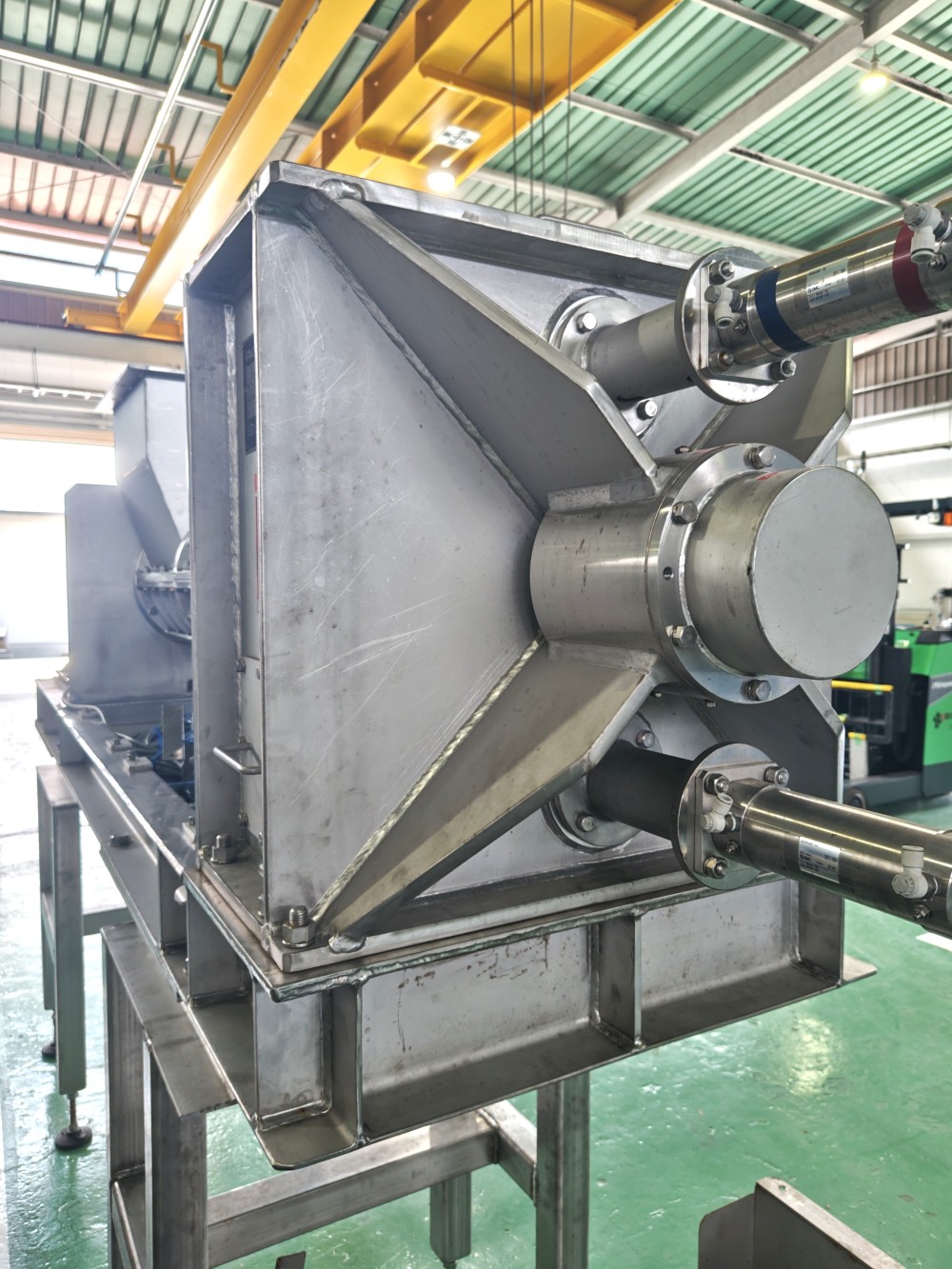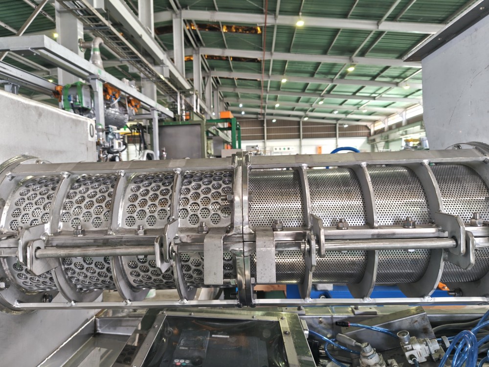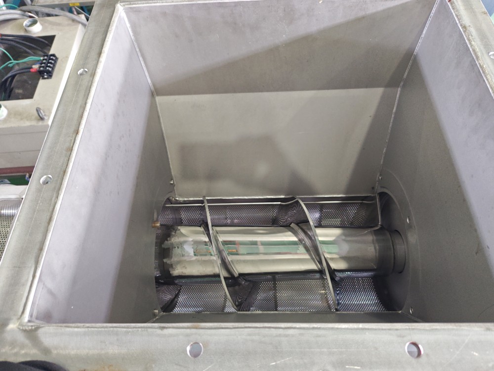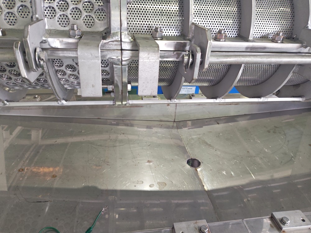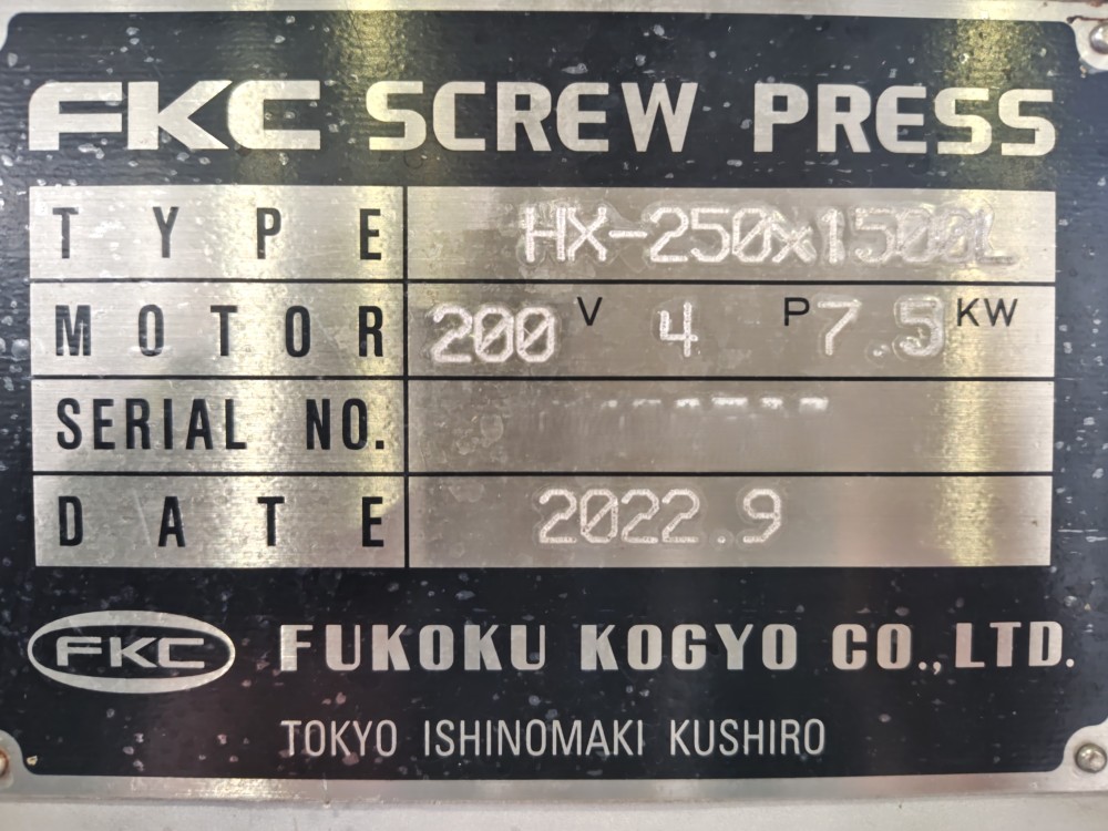 | 仕様 | 原料投入口:894×676(mm) 脱水ケーキ排出口:250×600(mm) ろ液排出口:2Sヘルール スクリュー回転数:14.5rpm |